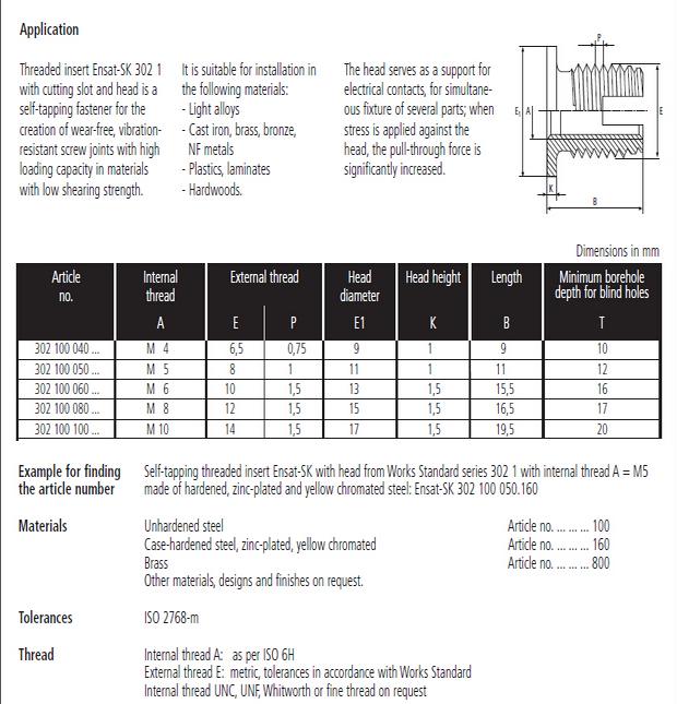 302-1型自攻太原丝套是一种新型的紧固件,使用后能够加强螺纹强度。产品有内外牙,将其嵌入塑料,铝合金,铸铁,铜等较软材料内,形成的内螺纹孔就可以具有较高的强度。